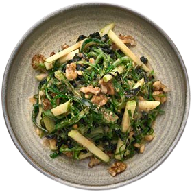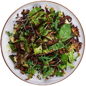 Салат из запеченной тыквы Тыква, микс салат, семена чиа, кедровый орешки, баклажаны жаренный, ореховый соус